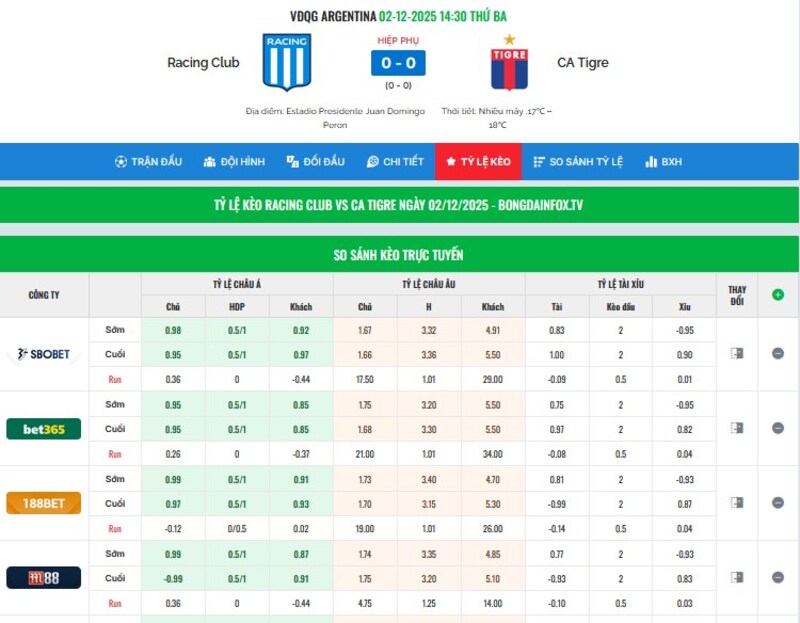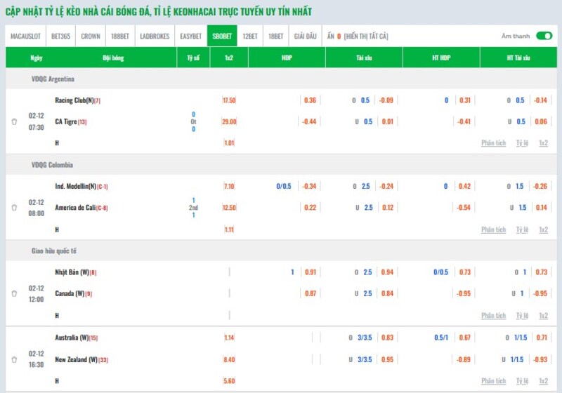 Ngay khi Bet365, SBOBET, M88 hay các nhà cái lớn điều chỉnh tỷ lệ, dữ liệu gần như ngay lập tức xuất hiện trên trang. Tôi cảm nhận rõ ràng rằng tốc độ ở đây nhanh hơn đa số nền tảng trong nước. Đặc biệt: