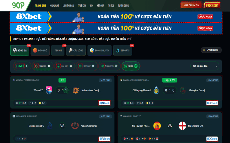 Cách tổ chức thông tin mang tính hệ thống, hạn chế sự rối mắt thường gặp ở nhiều trang phát sóng trực tuyến khác. Link xem trực tiếp được đặt ở vị trí dễ quan sát, giảm thiểu thao tác tìm kiếm. Ngoài ra, mức độ xuất hiện quảng cáo ở mức vừa phải, không gây ảnh hưởng lớn đến trải nghiệm chung.