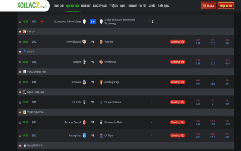 Xôi Lạc TV được biết đến như một hệ thống cung cấp thông tin bóng đá toàn diện, nơi hội tụ đủ mọi tiện ích dành cho người yêu thể thao cũng như những người quan tâm đến thị trường cá cược. Không đơn thuần chỉ là nơi xem bóng đá trực tuyến, trang web này còn hoạt động như một kho dữ liệu lớn với phương thức trình bày rõ ràng, dễ thao tác và phù hợp với mọi đối tượng người dùng.
