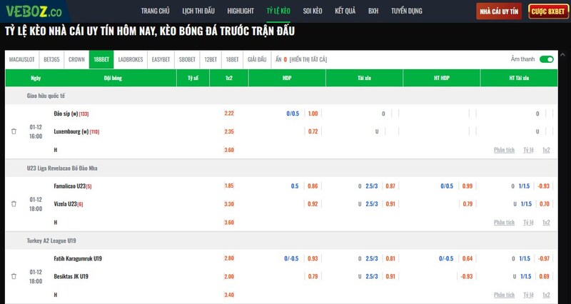 Nếu anh em muốn soi kèo một cách bài bản, không bỏ lỡ cơ hội vàng và tối ưu hóa lợi nhuận, Vebo chắc chắn là một lựa chọn đáng để mở mỗi ngày trước khi tỷ lệ kèo thay đổi!